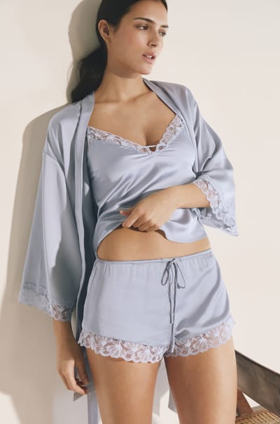 Déshabillé de pyjama satiné avec détail en dentelle;${refinementColor}