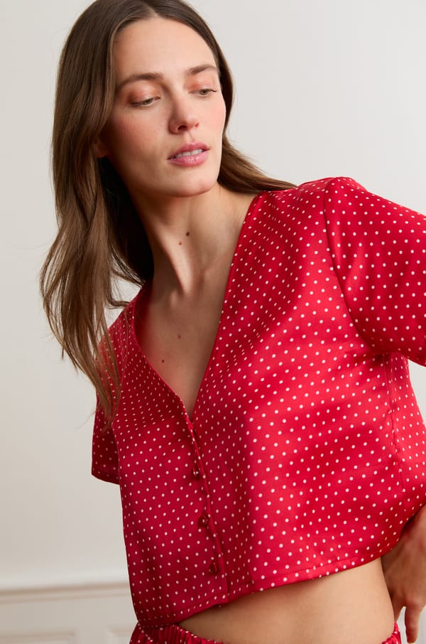 • Top de pyjama satiné à pois;${refinementColor}